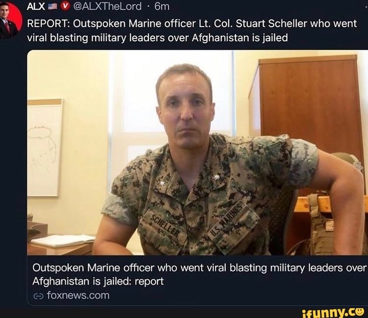Washington Examiner breaking news reporter Kaelan Deese has a disturbing update on Marine Lieutenant Colonel Stuart Scheller who last week posted the video seeking accountability for the fiasco. 1 day agoLt Col Stuart Scheller has been recently incarcerated after posting a viral video slamming military leaders. Blasts COs Over Mental Health Evaluation Request Resigns Marine Lt.
